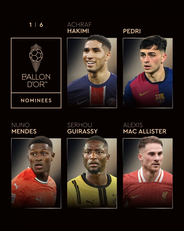 24 Live Network 8月7日新聞金球獎(jiǎng)?wù)叫剂?025年男子金球獎(jiǎng)的30人入圍名單。登貝勒(Dembele)帶領(lǐng)巴黎的9名球員入圍,雅馬爾(Yamal),拉菲尼亞(Rafinia)和姆巴佩(Mbappe)被列出。