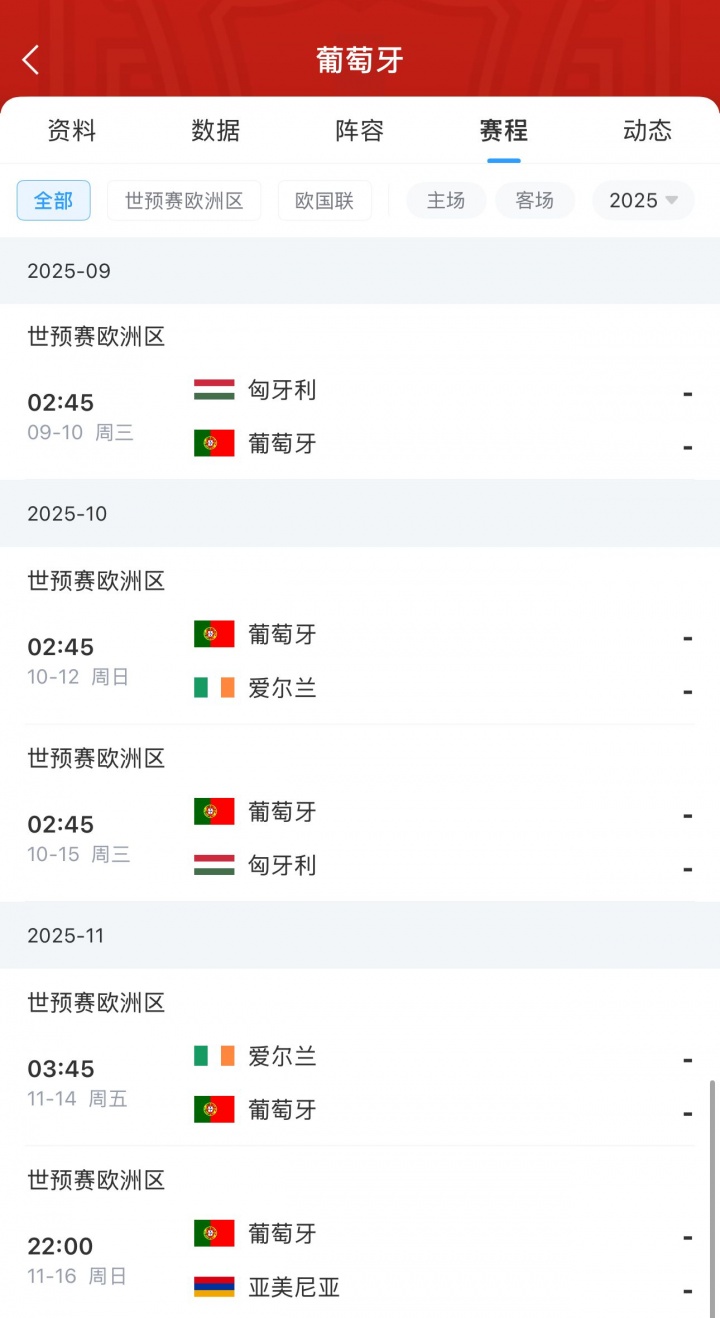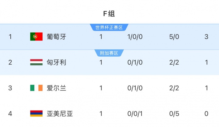 在歐洲預(yù)選賽中,F(xiàn)組還剩5場比賽,同一組的葡萄牙對手包括匈牙利,愛爾蘭和亞美尼亞。